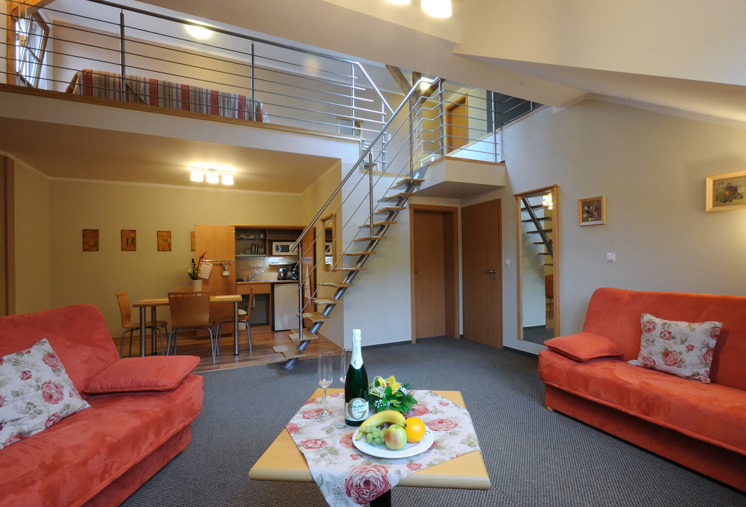Vychutnejte si svůj pobyt v prostorném rodinném pokoji se samostatnou ložnicí, obývacím pokojem a s kuchyňským koutem. Spěte sladce s konceptem pro zdravý a pohodlný spánek „Sleep Healthy“, který se skládá z ergonomických matrací, povlečení z 100% bavlny a polštáři s antialergickou úpravou.