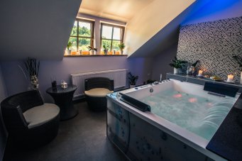 Celkem zde naleznete 3 privátní místnosti s hydromasážními vanami, které jsou vždy uzpůsobeny pro 2 osoby. Můžete si užít ničím nerušené chvíle plné soukromí se svoji polovičkou. Připravili jsme pro vás nekolik balíčků s různými vůněmi a doplňkovými službami.