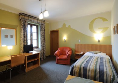 Cena pokoje zahrnuje kromě snídaně parkování v areálu a v případě přímé rezervace (t.j. nikoliv přes rezervační portály) také vstup na 2 hod. / os. / den do wellness centra v rámci otevírací doby. Cena pokoje nezahrnuje městký poplatek ve výši 21 Kč / os. 18+ / noc.